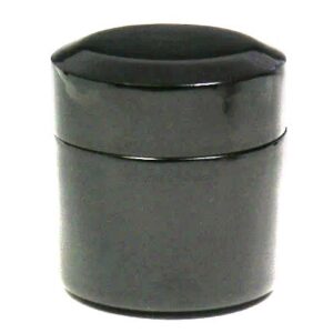 Cha-ki, 茶器, tea-container, cylindrical form with mitered top and bottom edges named ‘Fubuki’, 吹雪, blow-snow, lacquered black throughout; H. 1.8 sun kujira-jaku.