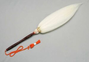 The hossu is an attribute of Bodhidharma, a legendary Buddhist monk, the fly whisk symbolizes the sweeping away of mental distractions and ignorance. In the translation of hossu as ‘flywhisk’ the word ‘fly’is implied. We are the fly. The word ‘hossu’ is a homonym for 法主, law-master, high priest in Buddhism.