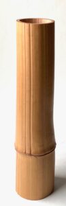 The simple bamboo cylinder and its measurements identified with 8 and Infinity, evokes ‘Shaku-hachi’, 尺八, Measure-eight, one of the three bamboo hanaire created by Rikyū at Odawara. Although the bamboo is no longer living, it will, under certain conditions, be vital forever. Similarly, when the Buddha entered Nirvana, the withered trees suddenly bore flowers. In a similar way, the bamboo of the hanaire is aged and treasured. When a flower is placed in the container, life begins anew.