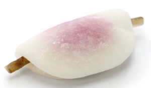 Hishi mochi, 菱餅, diamond mochi, is typically served around the time of the Hina Matsuri, 雛祭, Chick (Doll) Festival. Hina Matsuri occurs on the third day of the third month. According to the lunar calendar, this happens about the time that peach trees are in bloom, lending its name to the festivities – momo no se-kku, 桃の節句, peach’s season-divide. Peaches are believed to have the power to ward off evil. The sweet is diamond-shaped and composed of three layers of different colors: pink, white and green. These are the same colors as the sanshoku dango, and that relate to the colors of the kagami mochi display.