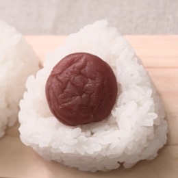 As an aspect of ko-haku that is seen in kagami mochi, is also seen in the staple in the Japanese diet, the o-nigiri, お握り, hon.-grasp, O-musubi, お結, Hon.-tie. The onigiri is made of cooked, somewhat sticky rice formed into a triangle, wrapped in no-ri, 海苔, sea-weed, that usually has within it an ume-boshi, 梅干, ‘prunus’-dry. Red, white and green. The sources of the three treasures are represented by the ingredients – rice from the field, nori from the sea, and the umeboshi from the mountain. These are the san-bō, 三宝, three-treasures of Shintō. Sanbō is also written 三方, three-sides.