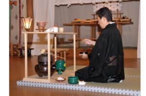 Urasenke offers Tea annually at the shrine in the month of October. The Iemoto of Urasenke presents a Kencha offering of both thick tea and thin tea at the main hall that enshrines the three goddesses. Itsukushima is an important cultural and spiritual location, and is a World Heritage site.