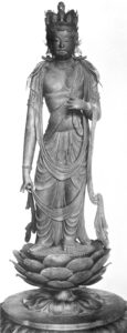 The water is then presented as an offering to the main deity of the Nigatsudō is Jū-ichi-men Kan-non, 十一面観音, Ten-one-face See-sound, Buddhist goddess of Mercy. Images of the deity inside Nigastudō are prohibited. For visual purposes another image of Juichimen Kannon from Nara can be seen below.