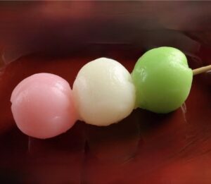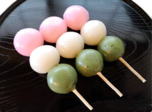 San-shoku dan-go, 三色団子, three-colors round-of, are known by different names depending on times and local traditions. For example, Hana-mi dango, 花見団子, flower-see dango, are often enjoyed for cherry blossom viewing.