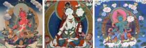Many other practitioners find great motivation from the deity known as the Mother of Liberation, Tara. Specifically in Vajrayana practices, she is considered to be a Buddha, and the ‘Tārā Tantra’ describes her as a “mother who gives birth to the buddhas of the three times”, who is also “beyond saṃsāra and nirvāṇa”. Like many deities, Tara is capable of taking many forms, three are outlined below.
